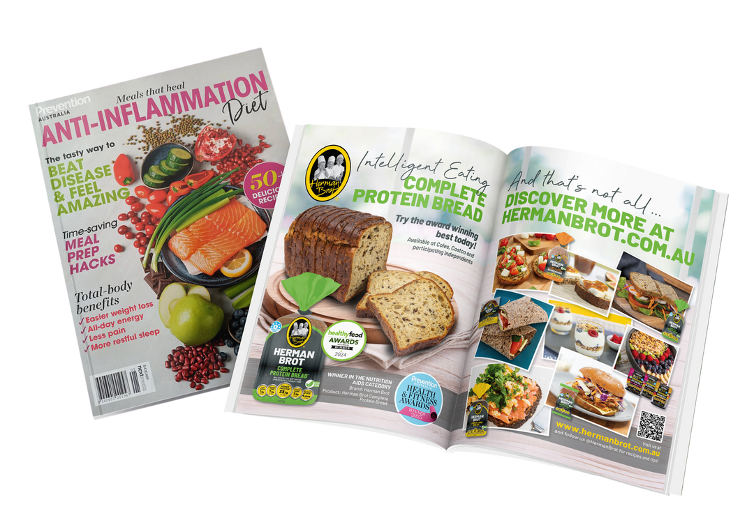We are proud to announce that Herman Brot has once again been selected by Prevention Magazine Australia, featured in their special edition Anti-Inflammation Diet, reinforcing our position as a leader in intelligent nutrition, low-carbohydrate eating, and plant-based protein innovation.
